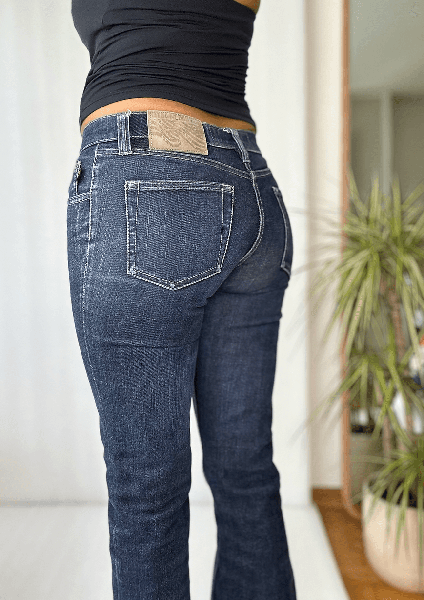 Bei manchen Artikeln kann die auf dem Etikett angegebene Grösse von unserer Angabe abweichen. Das liegt daran, dass sich Vintage-Kleidung mit der Zeit in Form und Passform verändern kann. Wenn wir vermuten, dass die Etikettgrösse nicht mehr der tatsächlichen Passform entspricht, geben wir unsere eigene Grösseneinschätzung an – auch wenn auf dem Foto noch die ursprüngliche Grösse zu sehen ist.