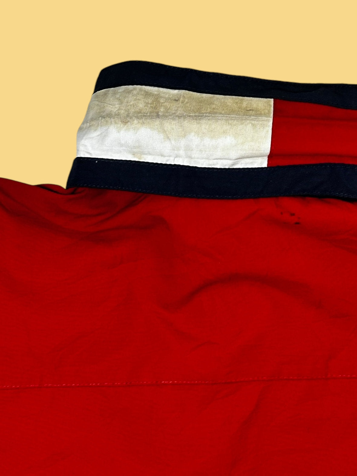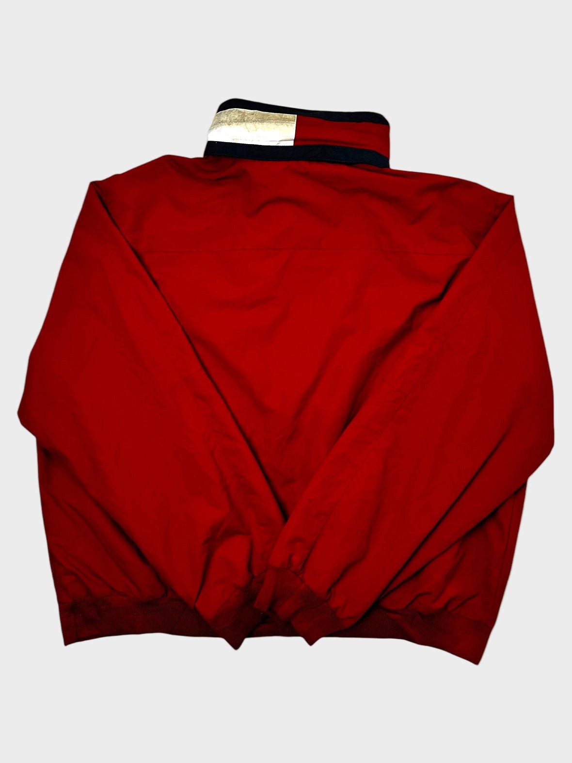 Vintage Tommy Hilfiger Übergangsjacke in kräftigem Rot – klassischer 90s/2000s-Look mit dezentem Logo. Leichte, windabweisende Qualität, ideal für Frühling und Herbst.